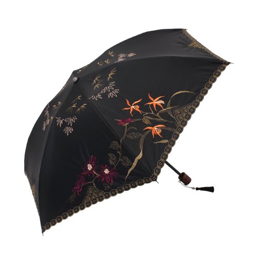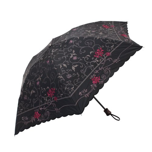 遮光唐草花刺繍ミニ折りたたみ日傘 ブラック